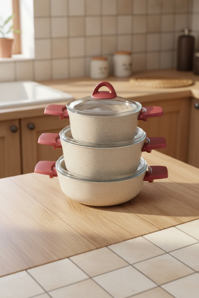 - 7 parça granit tencere seti, mutfakta ihtiyacınız olan her şeyi tek bir pakette sunar.